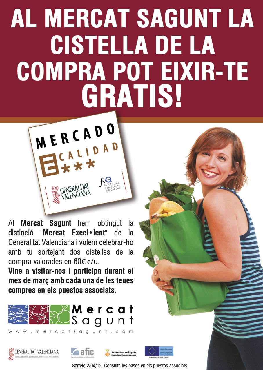 El Mercado Municipal de Sagunto ha obtenido la distinción “Mercado Excelente” de la Generalitat Valenciana. Los vendedores del mercado quieren celebrarlo contigo sorteando dos cestas de la compra valoradas en 60 euros cada una.